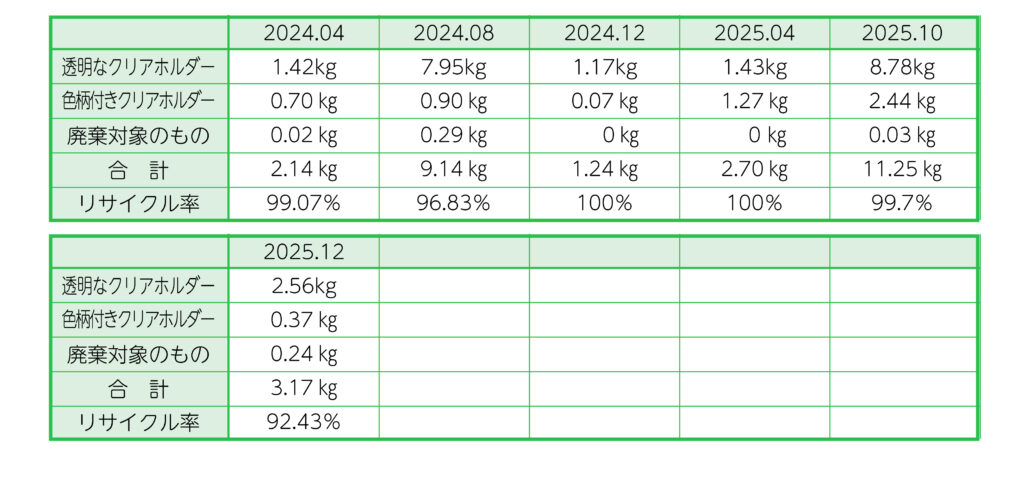 〇使用済クリアホルダーを回収して資源循環の支援に取組んでいます。